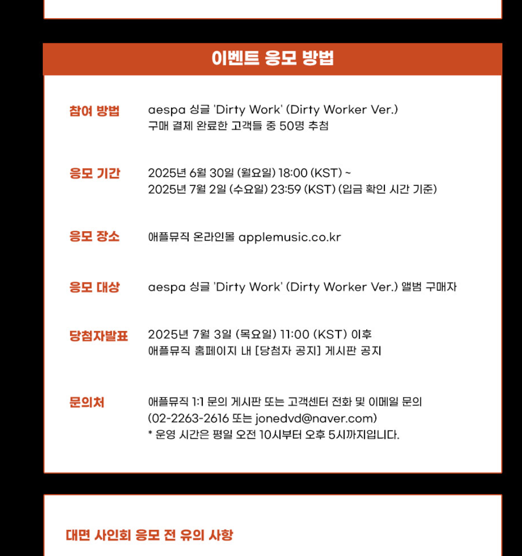 AESPA DIRTY WORK APPLEMUSIC FAN SIGN EVENT AUTOGRAPH 20250713