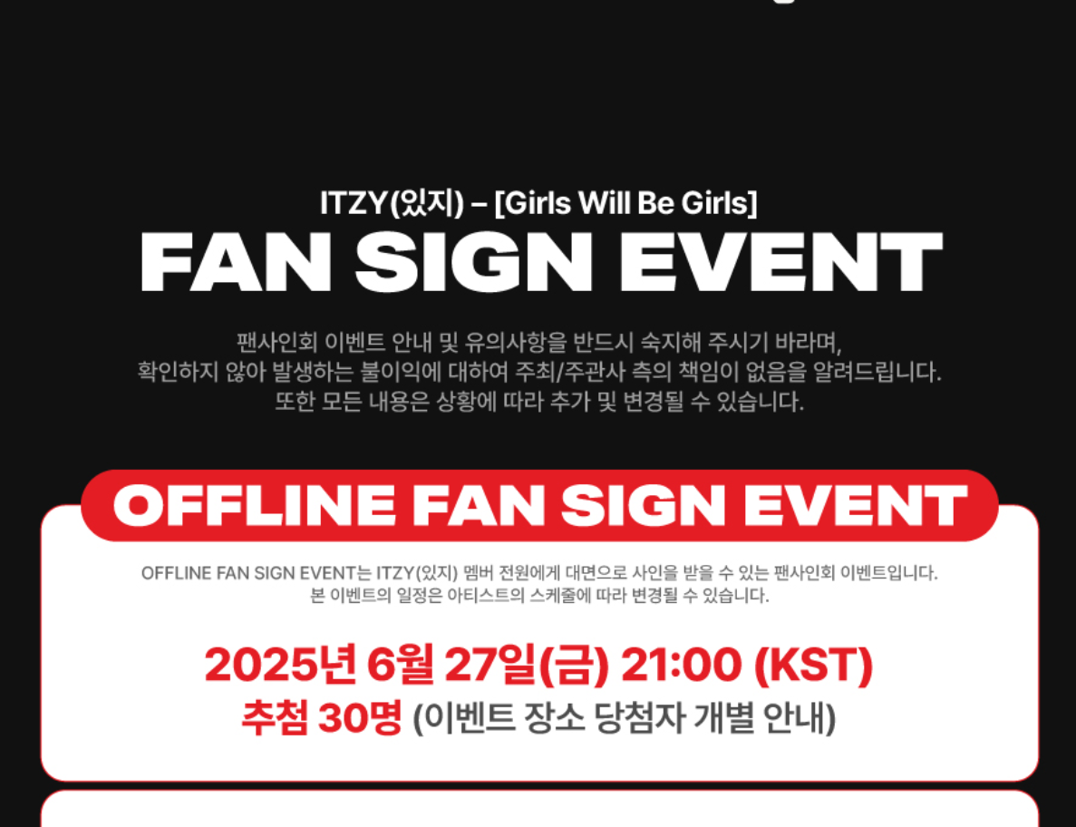 ![ITZY [GIRLS WILL BE GIRLS] SW FAN SIGN EVENT AUTOGRAPH 20250627](http://kpopdrops.com/cdn/shop/files/Screenshot2025-06-23132526_0baaddcc-6dad-4042-8bd4-2d38e6cf295c.png?v=1750652861&width=1445)