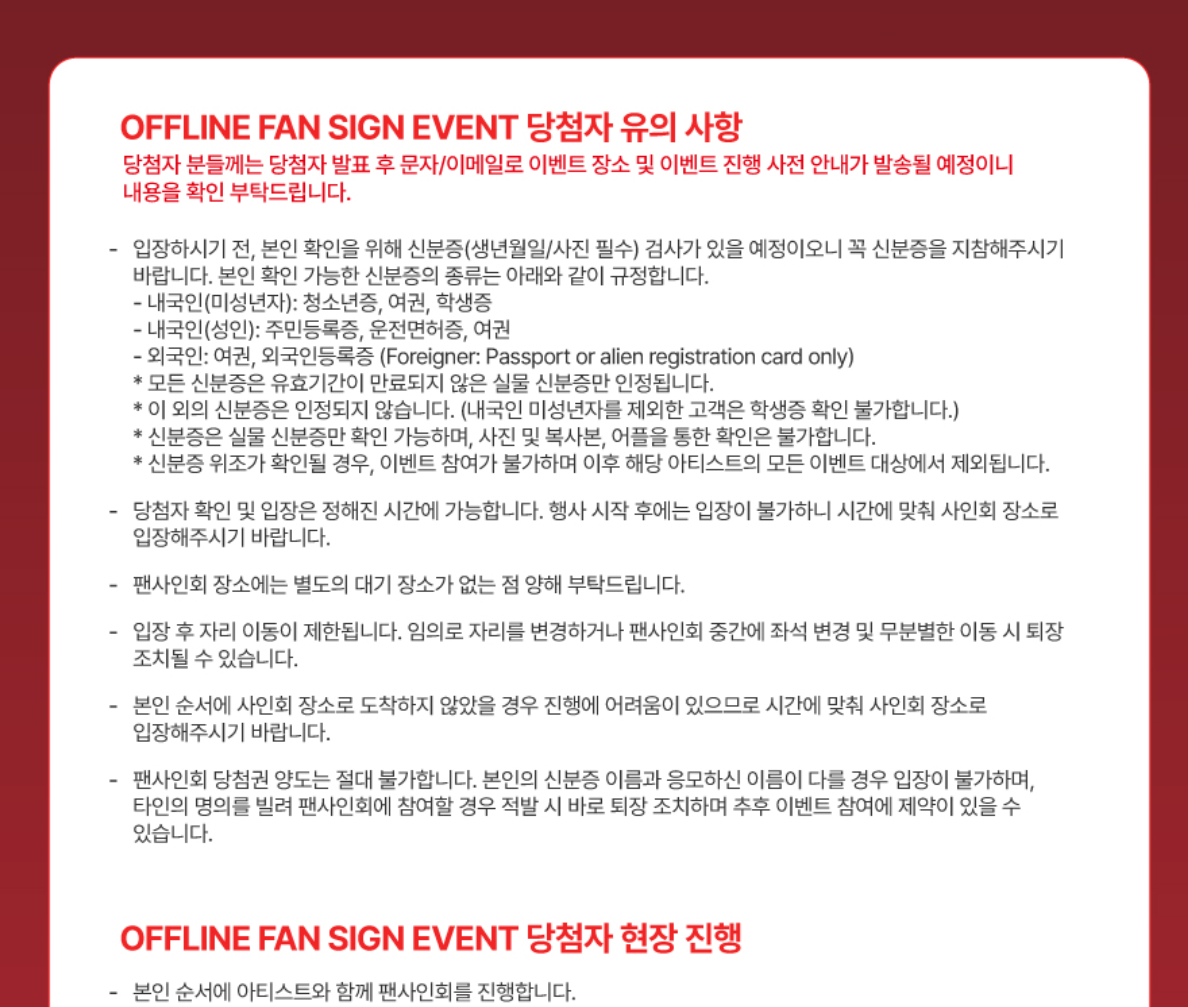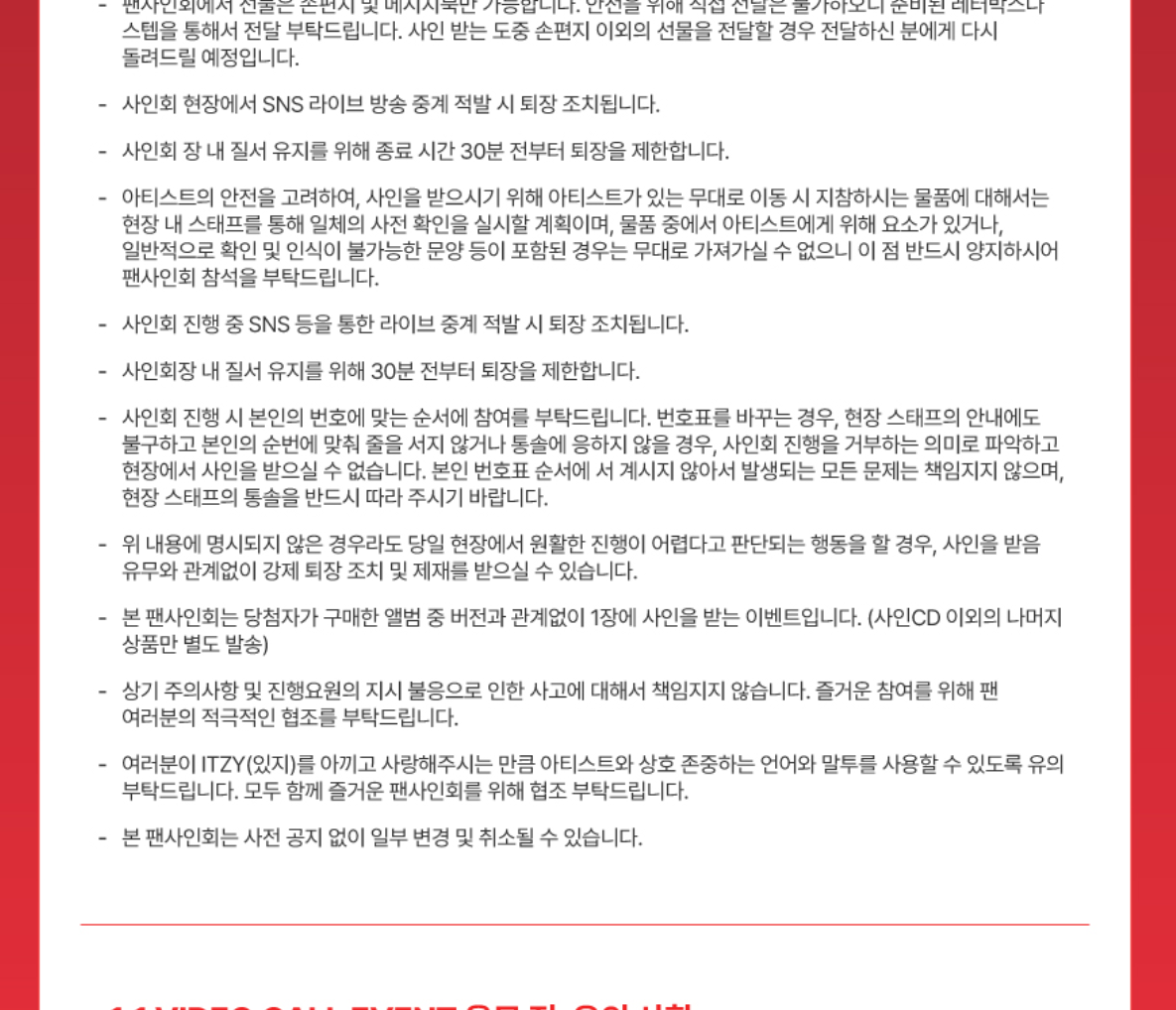If the entertainment agency changes the fan sign date, we will notify you immediately with the updated schedule.